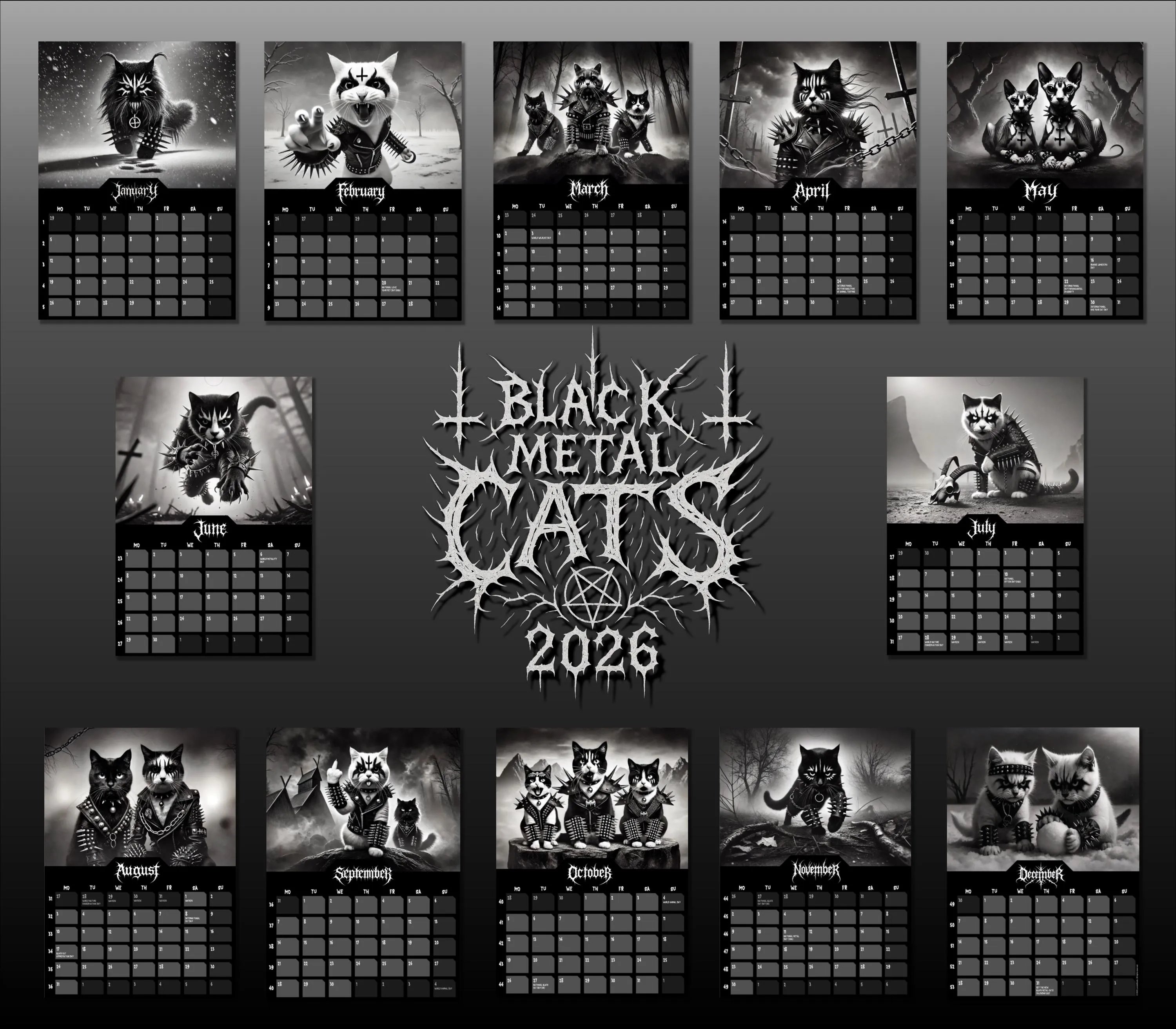 📅Each month showcases a new feline friend, embodying the true spirit of black metal. Whether you're a devoted metalhead, a cat enthusiast, or simply someone who revels in the darker side of life, this calendar is your gateway to a year of black meowtal vibes.