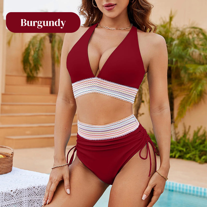 💃Vacation Sale 49% OFF💃High Waisted Tummy Control Color Block Bikini Set