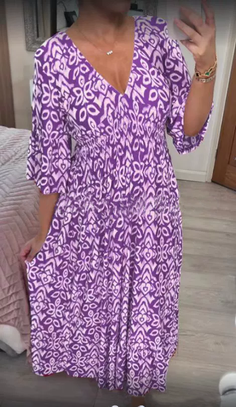 🔥Hot Sale 50% OFF 💞 Bohemian Casual Print V-Neck Long Dress