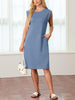 🔥Summer Sale 49% OFF💥Women Round Neck Loose Split Wrinkle-Free Midi Dress with Pockets