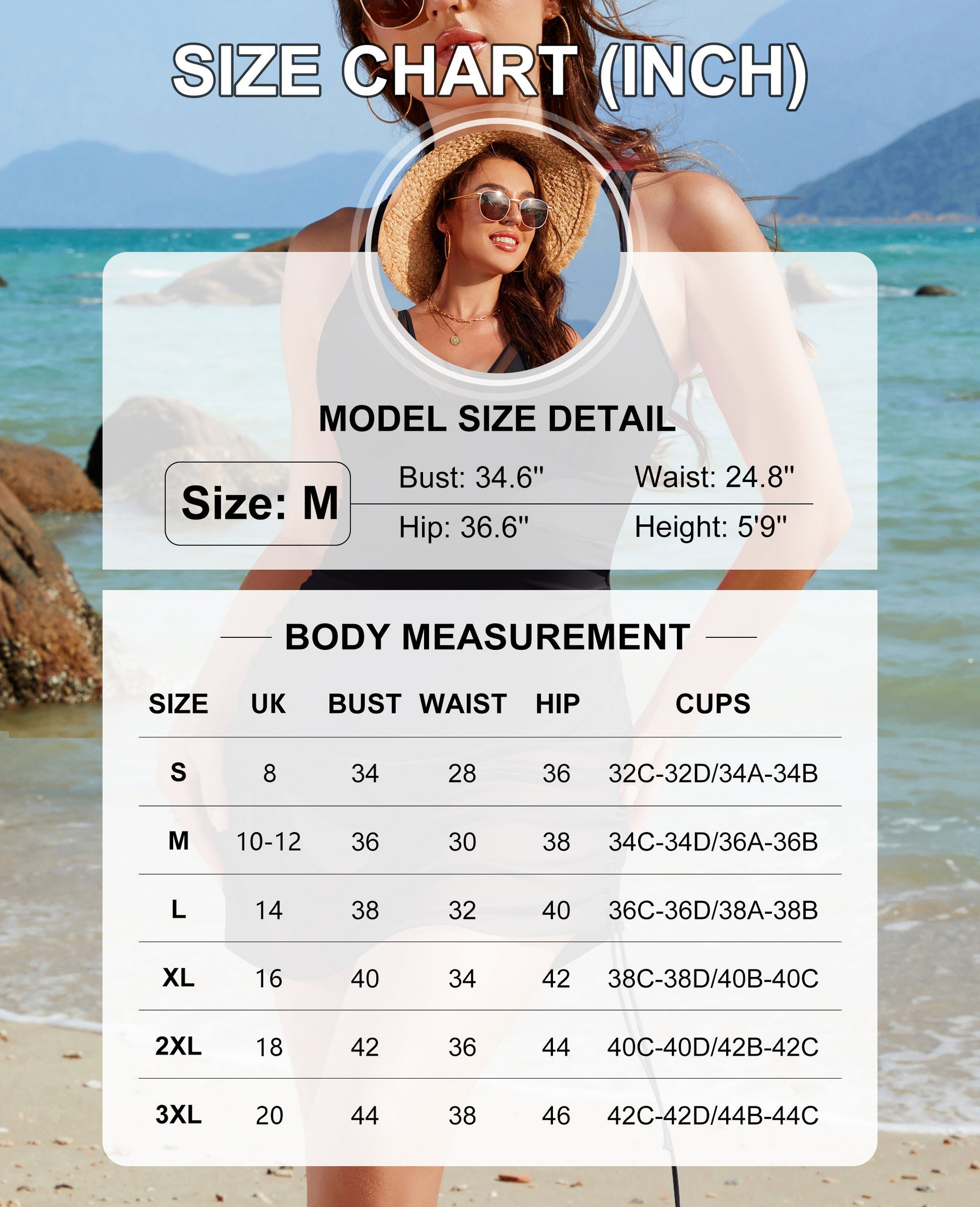 The tummy control and ruched design flatter your figure, combining modesty with a touch of sexiness.
