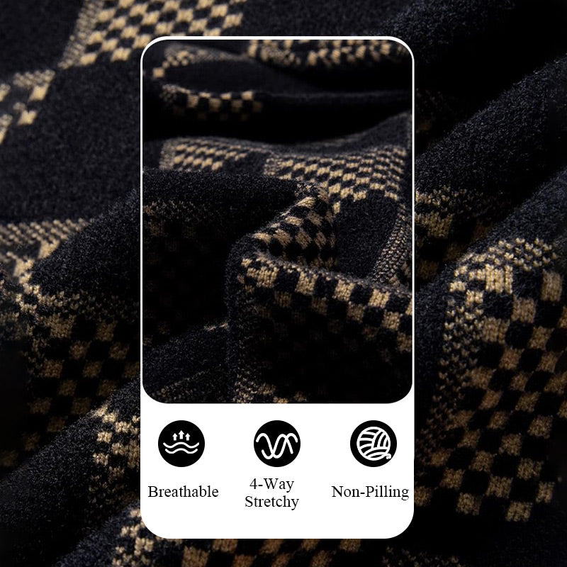 🔥New Year Promotion🔥Men's Checkered Printed Mock Neck Thickened Pullover Sweater